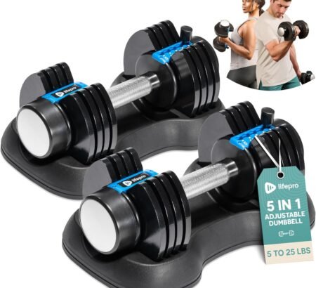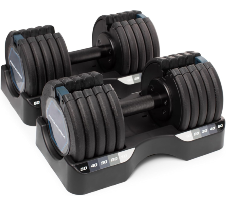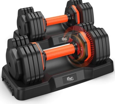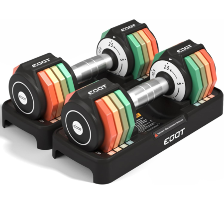 Adjustable dumbbells offer space-saving versatility with customizable weight options for efficient strength training at home or in the gym.