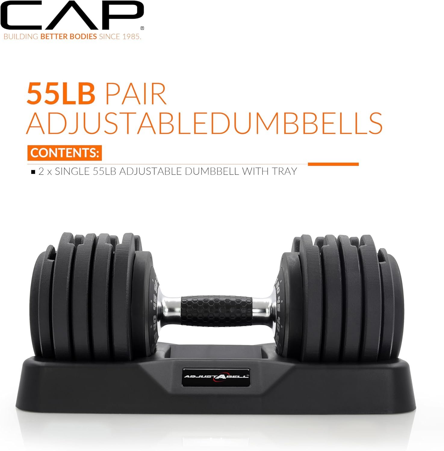 Elevate your home workouts with the CAP Barbell ADJUSTABELL® 55 lb Pair of Adjustable Dumbbells, a space‑saving, versatile strength training solution that replaces multiple dumbbells with one easy‑to‑use adjustable set. With a unique twist‑to‑adjust system and robust construction, these dumbbells offer smooth transitions between exercises and loads up to 55 lbs — perfect for full‑body workouts from beginner to advanced levels.