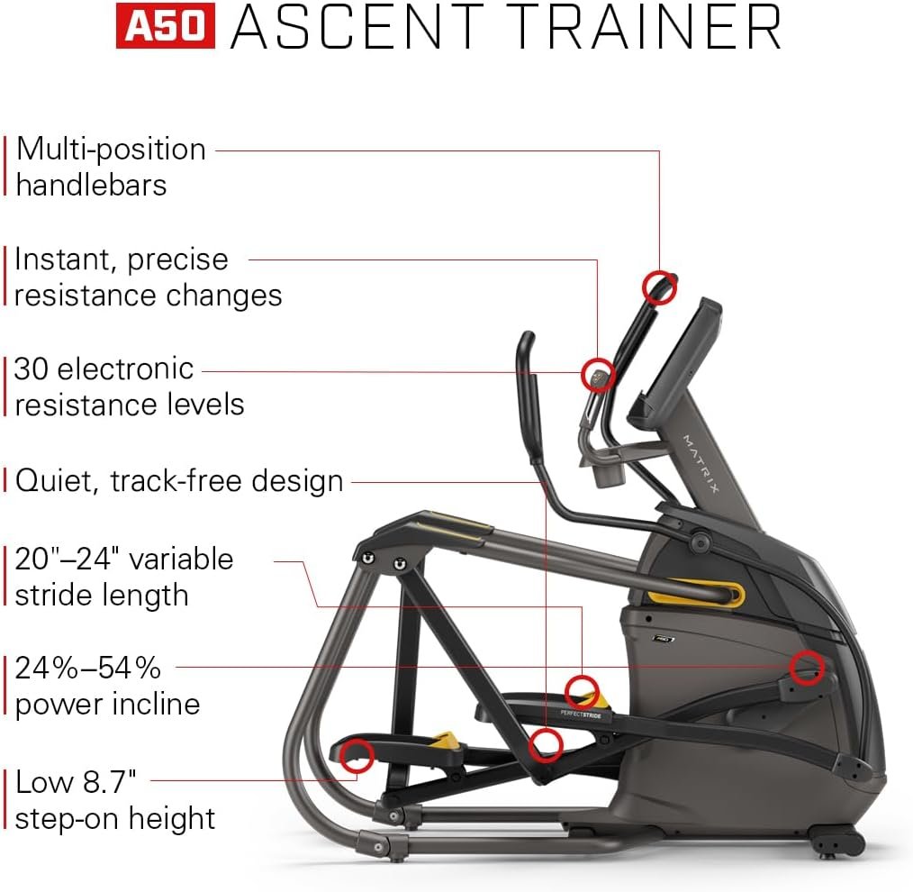The Matrix Fitness Ascent Trainer is a cutting‑edge cardio machine engineered to deliver a smooth, natural stride with variable incline and customizable resistance that engages more muscle groups than traditional ellipticals. Perfect for home gyms or commercial use, this trainer offers dynamic full‑body workouts with robust construction and intuitive console tracking — making every session more effective and enjoyable.