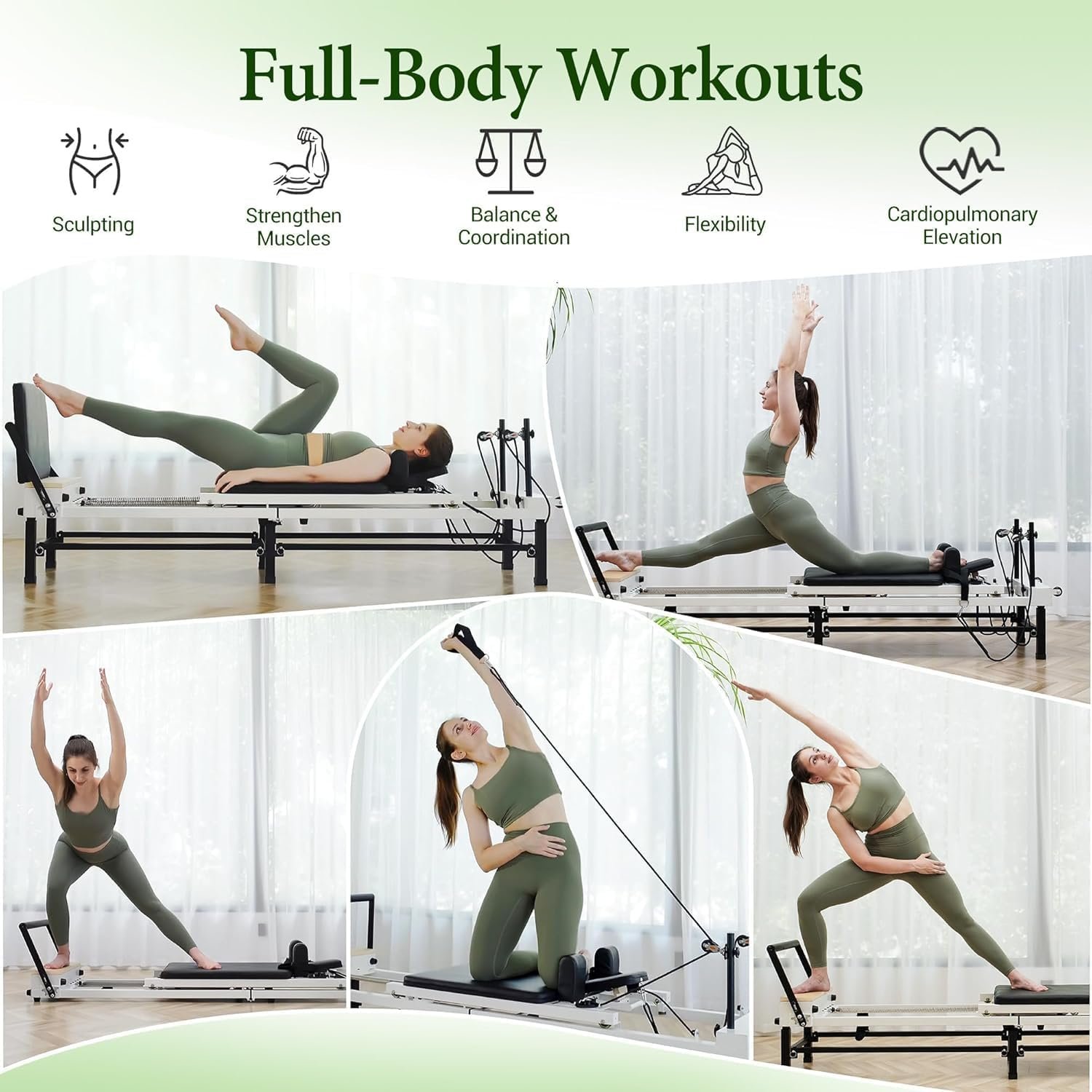 - Full‑Size & Foldable: Enjoy a spacious 91″ reformer for studio‑style performance that folds compactly for easy storage.