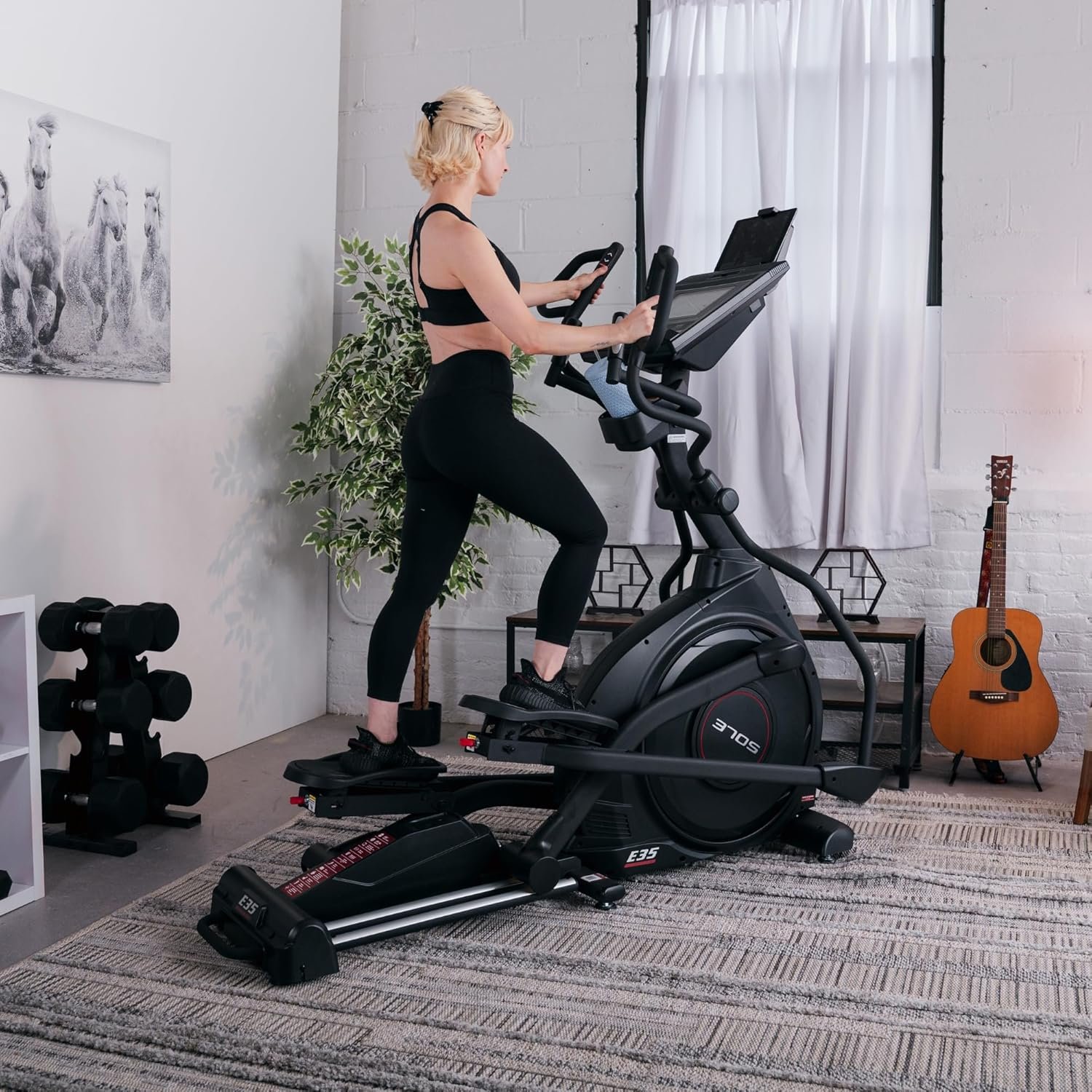 Get ready to elevate your home workouts with the Sole E35 Elliptical Machine — a top‑tier cardio trainer that combines solid engineering with modern tech and entertainment features. Built on a sturdy steel frame with a 350‑lb user weight capacity, this elliptical brings the durability and workout capability typically found in commercial gym equipment right to your home.