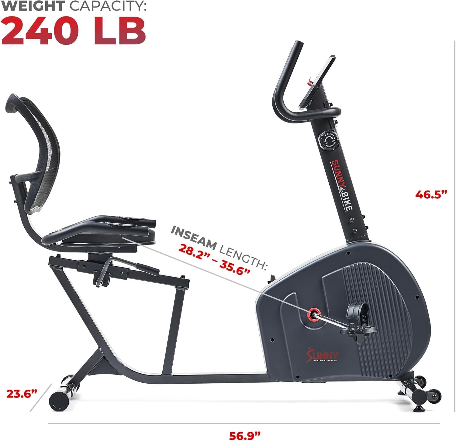 If you’re looking for a user‑friendly recumbent bike that blends comfort, quality, and smart functionality, this model from Sunny Health & Fitness is a fantastic choice. Its ergonomic design puts a premium on back support and seating comfort, making it perfect for daily cardio sessions, fitness beginners, seniors, or anyone who wants a smooth, low‑impact ride. With magnetic resistance and a performance display, you can easily tailor your workouts to your needs and track key metrics like speed, distance, calories burned, time and pulse rate.