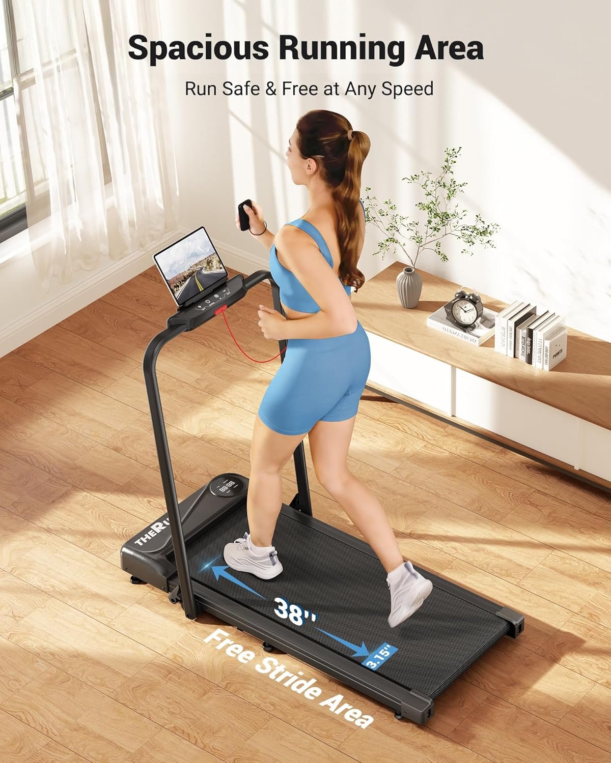 The THERUN 2.5 HP 2-in-1 Under Desk Walking Treadmill is a compact, foldable treadmill built for everyday movement at home or in a home office. It combines under-desk walking with light jogging capability, offering a widened belt, quiet motor, remote control, and easy storage in a slim, space-saving design.